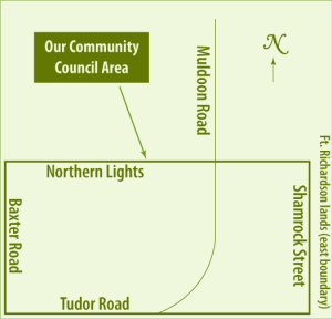 Scenic Foothills Community Council area is bounded by Baxter Road on the West, Northern Lights Boulevard on the North, the military reservation on the East, and Tudor Road on the South.