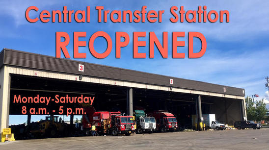 The Central Transfer Station is open again! Residential hours of operation: 8 am–5 pm Monday-Saturday. The Anchorage Regional Landfill will resume its regular hours of 7:30 am–5 pm Monday-Friday and Saturday 8 am-5 pm. If you have additional questions contact SWS Customer Service at 343-6250.